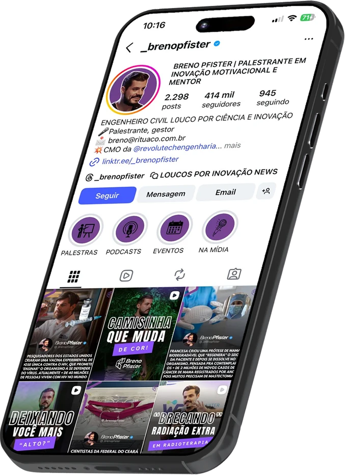 Breno Pfister se destaca como uma figura influente nas mídias sociais, conhecido por sua autenticidade e habilidade em facilitar conexões estratégicas. Através de suas plataformas digitais, ele promove produtos e serviços de forma envolvente, construindo relacionamentos sólidos com sua audiência. Sua comunicação sincera o torna uma escolha natural para diversas oportunidades profissionais, estabelecendo uma ponte eficaz entre marcas e consumidores.